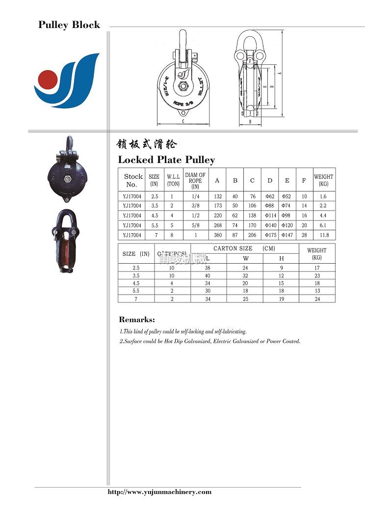 熱鍍鋅/噴塑自鎖鋼絲繩滑輪