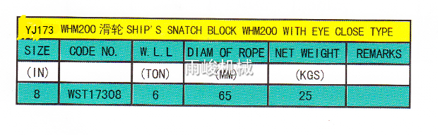 • YJ173 WHM200日式船用閉口滑輪單輪環式